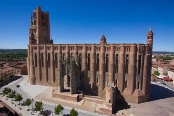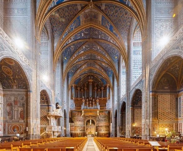 In the delightful medieval town of Albi, birthplace of Toulouse-Lautrec, with its magnificent brick-built Gothic cathedral dedicated to Saint Cecilia. Begun in 1282, in the aftermath of the Albigensian Crusade, it is claimed to be the largest brick building in the world.