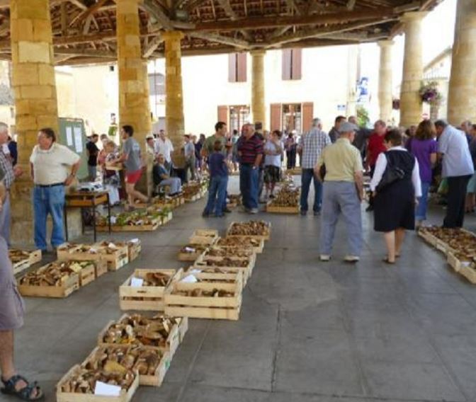 Marché aux cèpes sous la halle de Villefranche du Périgord