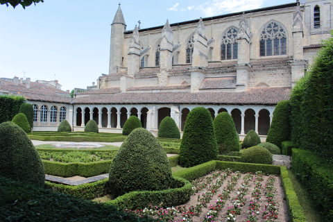 Marmande, in the Lot et Garonne region of south-west France, was founded in 1182 by Richard the Lionheart, then Duke of Aquitaine and future King of England. For the next five centuries, the town experienced a turbulent history including the crusade against the Cathars, the Hundred Years War, plague and the Religious Wars. The church of Notre Dame de Marmande was built between the thirteenth and fifteenth centuries and the cloisters are now fronted by a formal garden with impressive parterres and topiary.