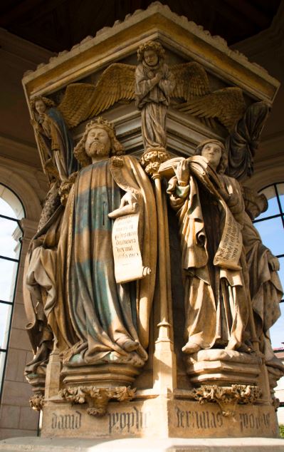 Unfortunately, damage, mainly due to exposure to the weather, has meant that the cross has not survived and there are only fragments of the Calvary, now kept in the Musée des Beaux-Arts in Dijon. What is still intact is the hexagonal base with its sculptures of the six prophets who had foreseen the death of Christ on the Cross (Moses, David, Jeremiah, Zachariah, Daniel and Isaiah).