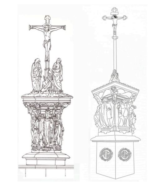 The structure was originally located in the central courtyard of the main cloister and consisted of four parts – the well, which was about four meters deep, the large hexagonal base, adorned with figures of prophets and angels, a terrace which sat on top of the pillar possibly containing the figures of a ‘Calvary’ scene, and a tall slender cross which rose from the centre.