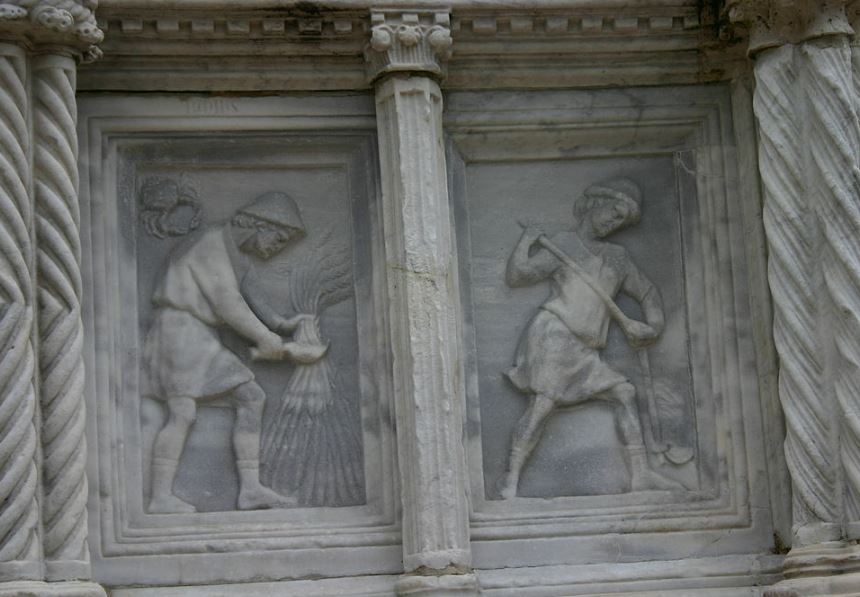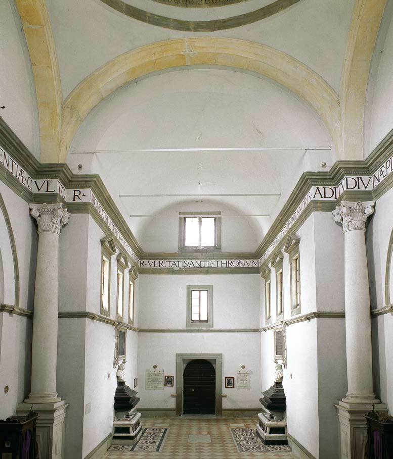 The interior is quite plain with a large octagonal font at the centre dating from 1246. The main feature is the pulpit which was sculpted by Nicola Pisano, the father of Giovanni, between 1255 and 1260. It is a hexagonal construction, raised on seven columns. At the base of three of these columns are sculpted lions.