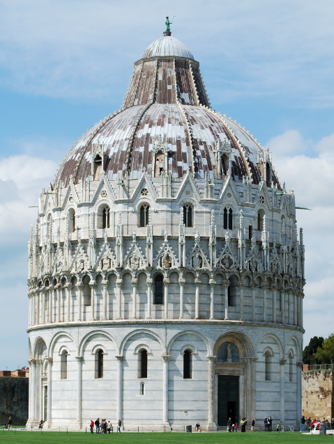 The Baptistery is a spectacular construction and is the largest in Italy. Building started in 1152 and it was completed in 1363 and so it is an example of the transition from the Romanesque to the Gothic style.