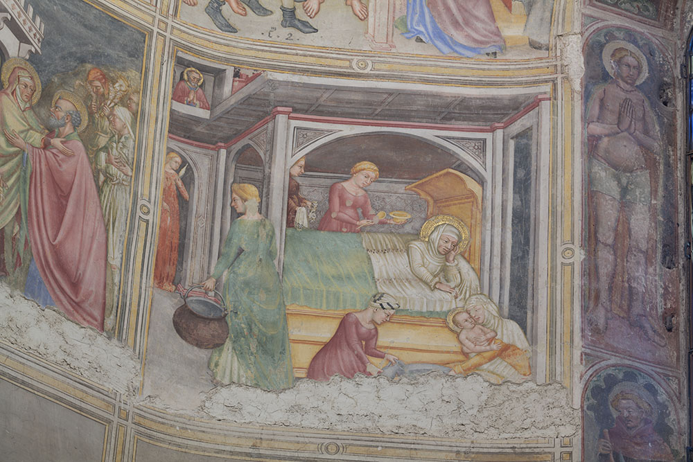 The walls of the structure were completely covered in frescoes. The earliest, attributed to Francesco Traini, were painted in 1336 – 41. Frescoes depicting ‘The Last Judgement’ and the ‘Triumph of Death’ in the south-western corner were painted in the years after the Black Death and are usually attributed to Buonamico Buffalmacco. In the north gallery there is a cycle of ‘Scenes from the Old and New Testaments’ by Benozzo Gozzoli, whilst in the south arcade are ‘Stories of Pisan Saints’ (1377 – 1391) by Andrea Bonaiuti, Antonio Veneziano and Spinello Aretino as well as ‘Stories of Job’ by Taddeo Gaddi from the end of 14th century.