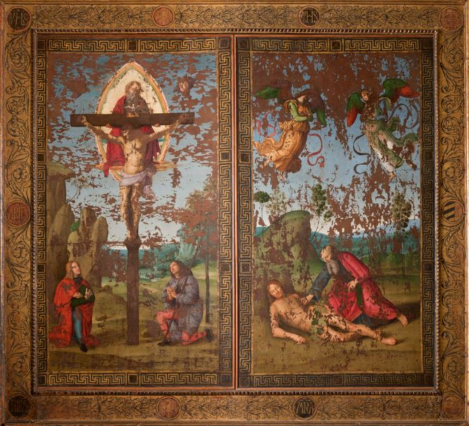 In July 1944, a bomb fragment from an Allied air raid started a fire in the Camposanto, which burned for three days, causing the timber and lead roof to collapse. This severely damaged everything inside the cemetery, including the frescoes. Subsequent restoration work has stabilised them but most are now in poor condition.