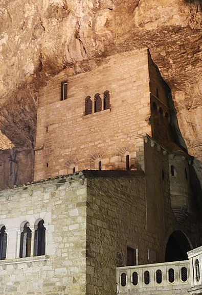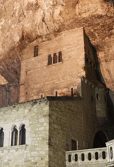 The fact that it was built under a rock overhang has allowed the chapel’s thirteenth-century frescoes to survive in an exceptional condition. On the lower part of the wall is half of a now-faded fresco depicting Saint Christopher, whilst above is a representation of ‘The Annunciation and The Visitation’.