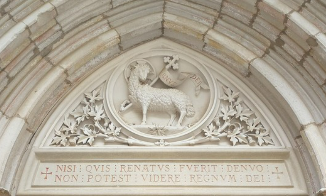 Chapelle Saint-Jean-Baptiste is a small octagonal chapel that initially served as a funeral chapel; however, it was transformed into a baptistery in the nineteenth century. The Gothic portal from the fifteenth century was kept, on which a tympanum was added depicting the Lamb of God.