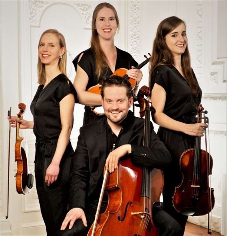 At the Issigeac International Music Academy in the Dordogne for a concert by the internationally-acclaimed Quatuor Dudok from Amsterdam. Quatuor Dudok are Marleen Wester and Judith Van Driel (violins), Marie-Louise de Jong (viola) and David Faber (cello). They treated us to an evening of quartets from the Classical (Mozart), Romantic (Tchaikovsky) and Modern (Shostakovich) periods.