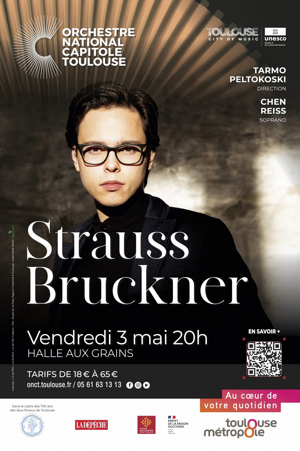 At the Halle aux Grains, Toulouse, for a concert of works from the later years of composers Richard Strauss and Anton Bruckner by the Orchester national du Capitole de Toulouse led by its new musical director, the Finnish conductor Tarmo Peltokoski.