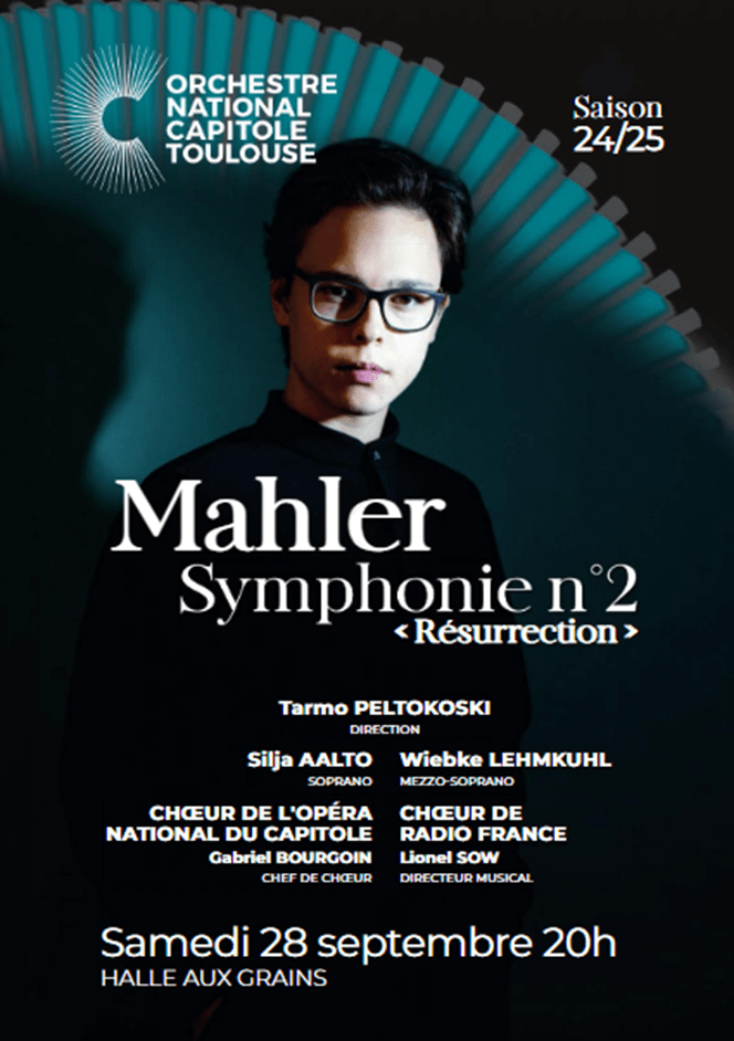 The work gets its name, ‘Resurrection’, from the final movement when the choir enters singing “Aufersteh’n, ja aufersteh’n” (“Rise again, yes, rise again”). The joint choirs of l’Opéra national du Capitole and Radio France performed it superbly and the voices of the soloists, Finnish soprano Silja Aalto and German mezzo Wiebke Lehmkuhl, were clear and bright, even if their position in the middle of the orchestra meant that they didn’t soar above the brass as much as they might have done had they been at the front.