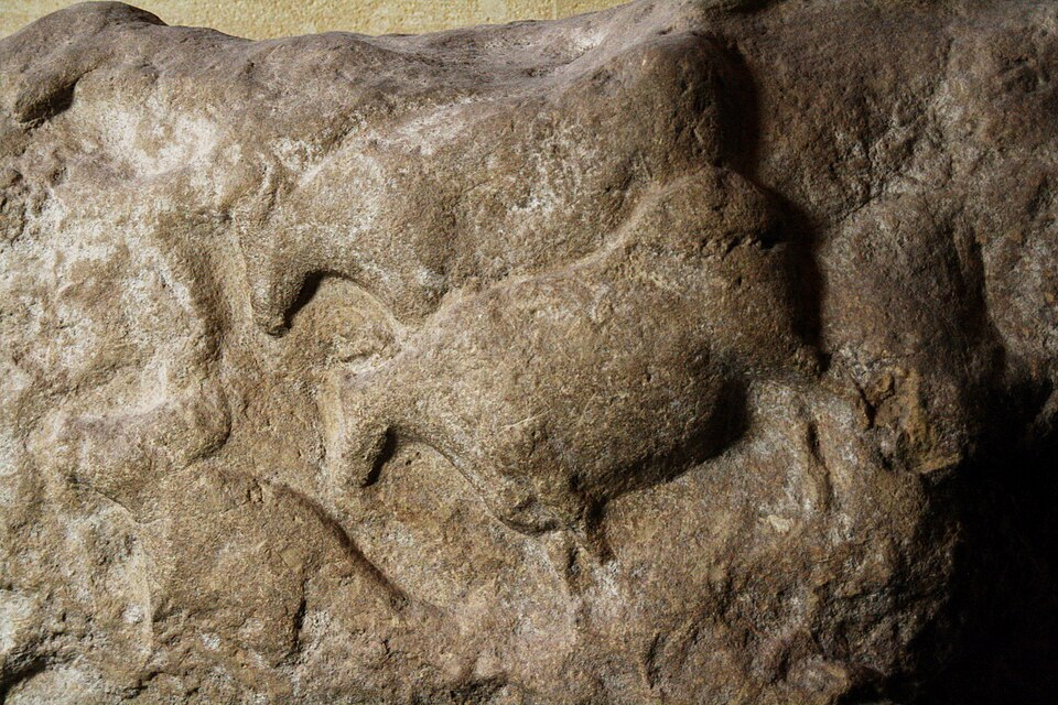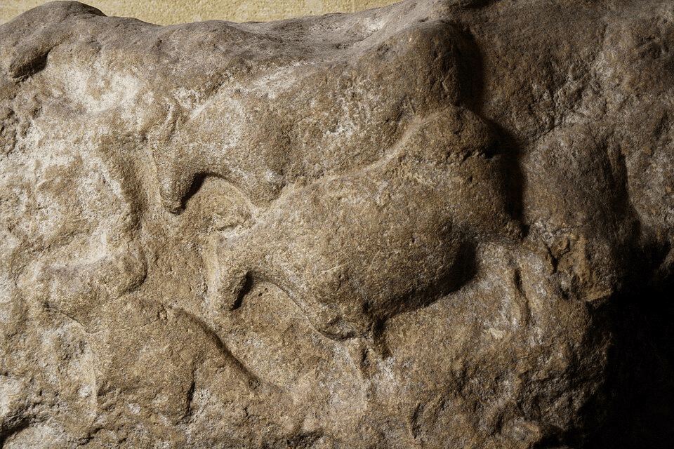 Relief sculpture of aurochs found on the Fourneau-du-Diable in Bourdeilles, Dordogne